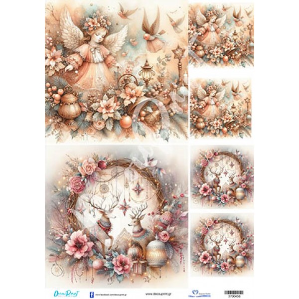 3700456 Αγγελάκια Τάρανδος Στεφανάκι Χριστούγεννα Ριζόχαρτο Α3